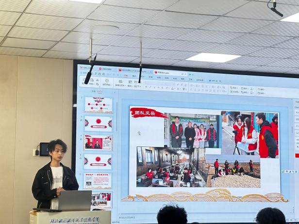 在志愿风采展示交流环节,来自电力电子工程系的2个宣讲队依次上台讲述暑期“三下乡”实践经历。基层青年“行”志愿服务队团队代表杨志京同学以“乡村振兴走基层,青春聚力正当时”为主题,讲述了团队在暑期期间前往黄冈市红安县杏花乡星光村开展乡村服务的经历。创梦下乡团队代表邱洋和张圣贤同学以“非遗文化传承”为主题,讲述了团队前往孝感市云梦县弘扬当地皮影非遗文化的历程。他们用自己的行动诠释了青年志愿者的责任与担当,也为在场的新生树立了榜样,提供了宝贵的实践经验。
