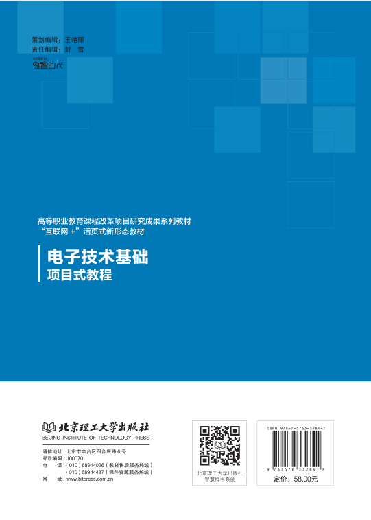 《电子技术基础项目式教程》于2023年12月出版发行。本教材的编写于2017年开始准备,教材编写团队不断积累提炼相关电子大赛及“1+X集成电路开发与测试”技能等级证书对电子技术知识、技能及素质要求,以立足电子产品生产岗位能力的培养并为学生后续专业课奠定坚实基础的目标而编写。2020年10月正式定稿,2021~2023年通过定稿的项目内容形成教案、PPT进行试教试用。通过试教试用反馈建议,对项目内容进行了微调与瘦身,引入与生产、生活实际有密切联系、具有典型性的案例作为项目内容,契合国家“双高计划”建设要求, 构建了“工学结合、项目引领、任务驱动”的“岗课赛证创”五维融通的“教、学、做”一体式教材。